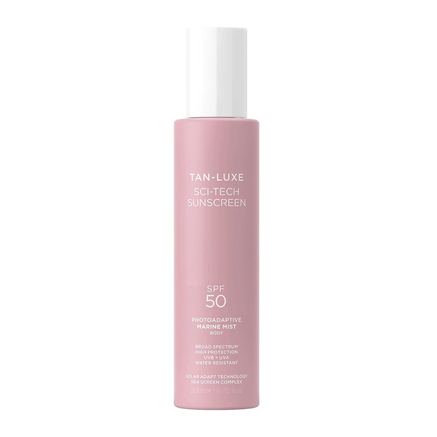 Tan-Luxe Sci-Tech Sunscreen is an ultra-lightweight, fast-drying marine mist designed to provide broad spectrum SPF protection for the body.